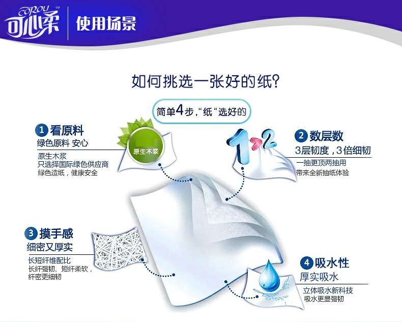 可心柔 V8系列CoRou云柔系列白色木浆60抽